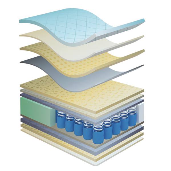 در این تشک، هر فنر بهصورت مستقل درون پاکتهای جداگانه قرار گرفته است تا فشار بدن را به طور یکنواخت پخش کند و از انتقال حرکت میان دو نفر جلوگیری شود. روی این ساختار، یک لایه مموری فوم ۴ سانتیمتری با دانسیته ۹۰ کیلویی قرار دارد که با حرارت بدن شکل گرفته و فرم ستون فقرات را بهصورت کامل پشتیبانی میکند.